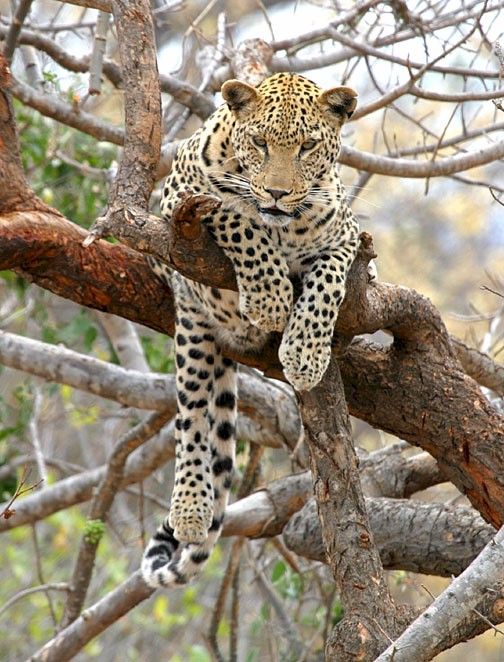 This leopard seems to be stuck in a tree…